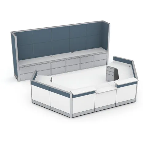 From $771.99Select options This product has multiple variants. The options may be chosen on the product pageFreestanding U-Shaped Reception Area With Storage Wall | ADA Compliant | Sapphire Cubicle And Sapphire Wall System | 8x15x39H-32H