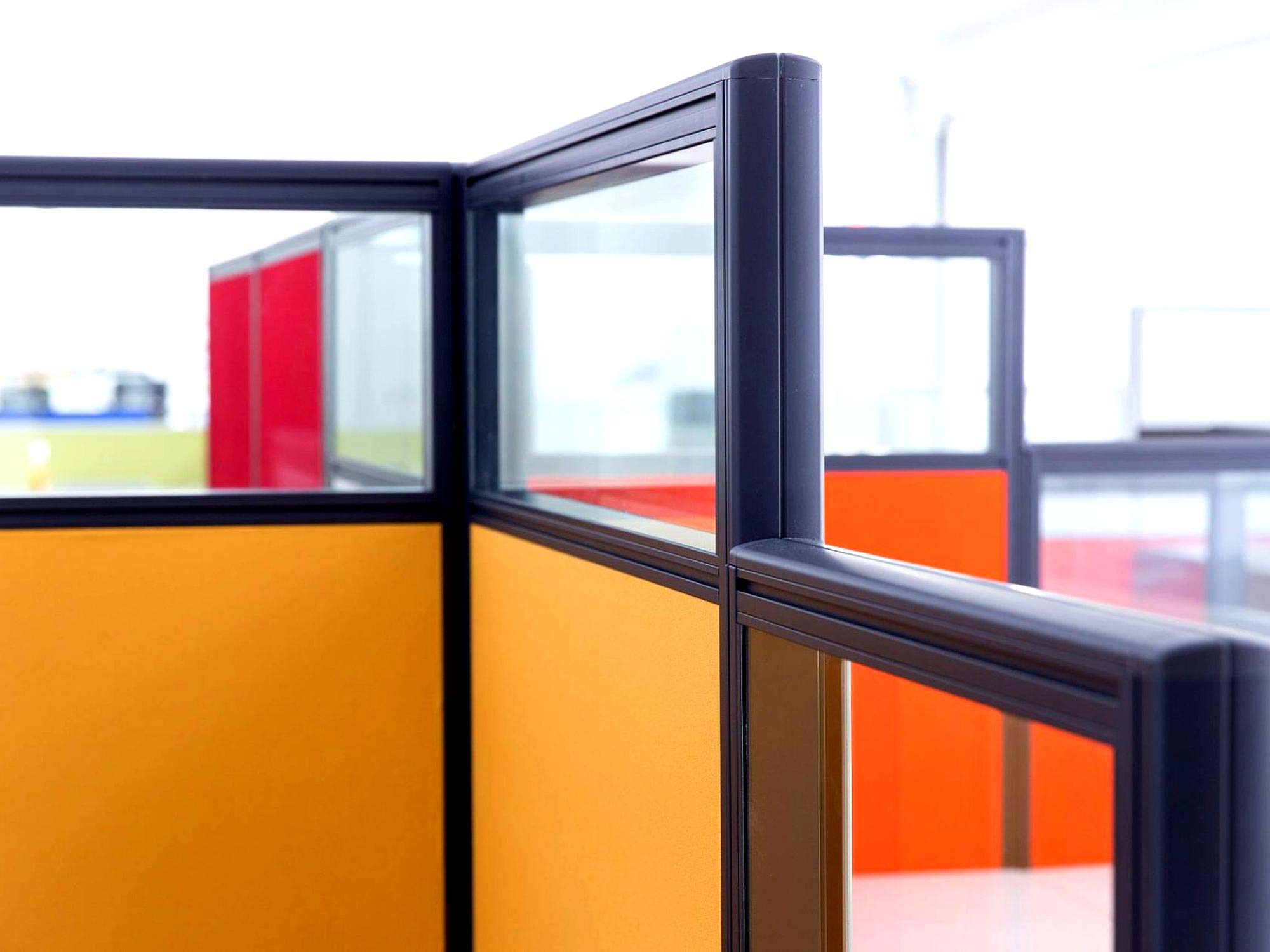 Choose from 15 different colored fabrics to create tackable surfaces for your panels or incorporate whiteboard dry-erase surfaces. You can also choose tempered glass tops for your panel walls to strike that perfect blend of privacy and transparency in your workplace. Our cubicle panel connectors come in different sizes to create non-linear cubicle groupings which really stand out and look distinctively professional.
