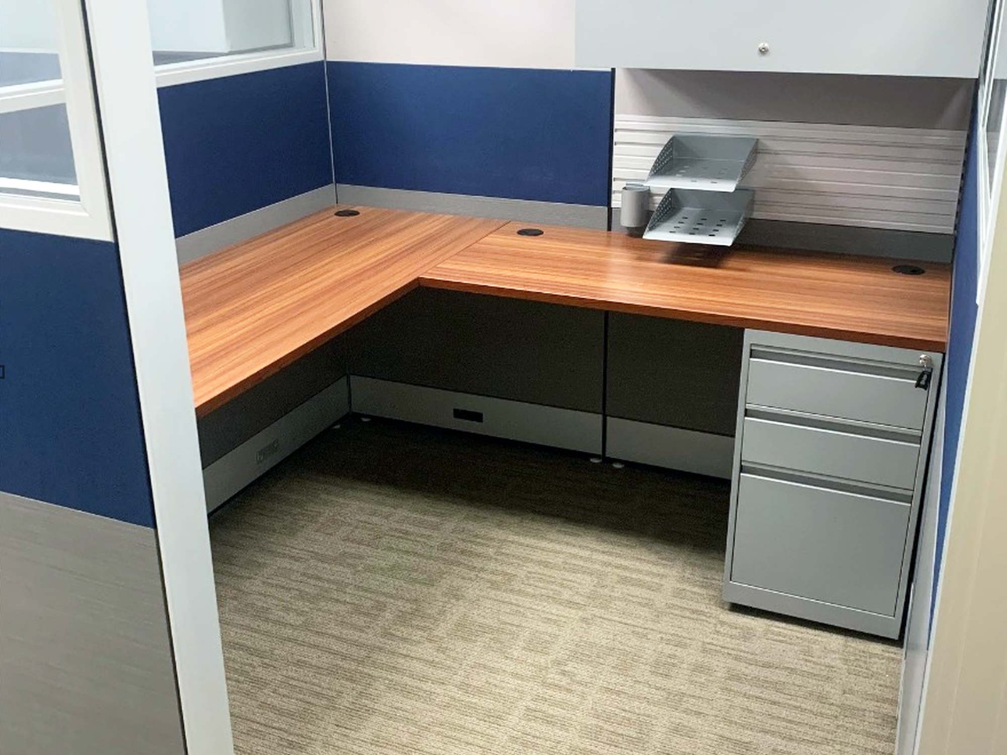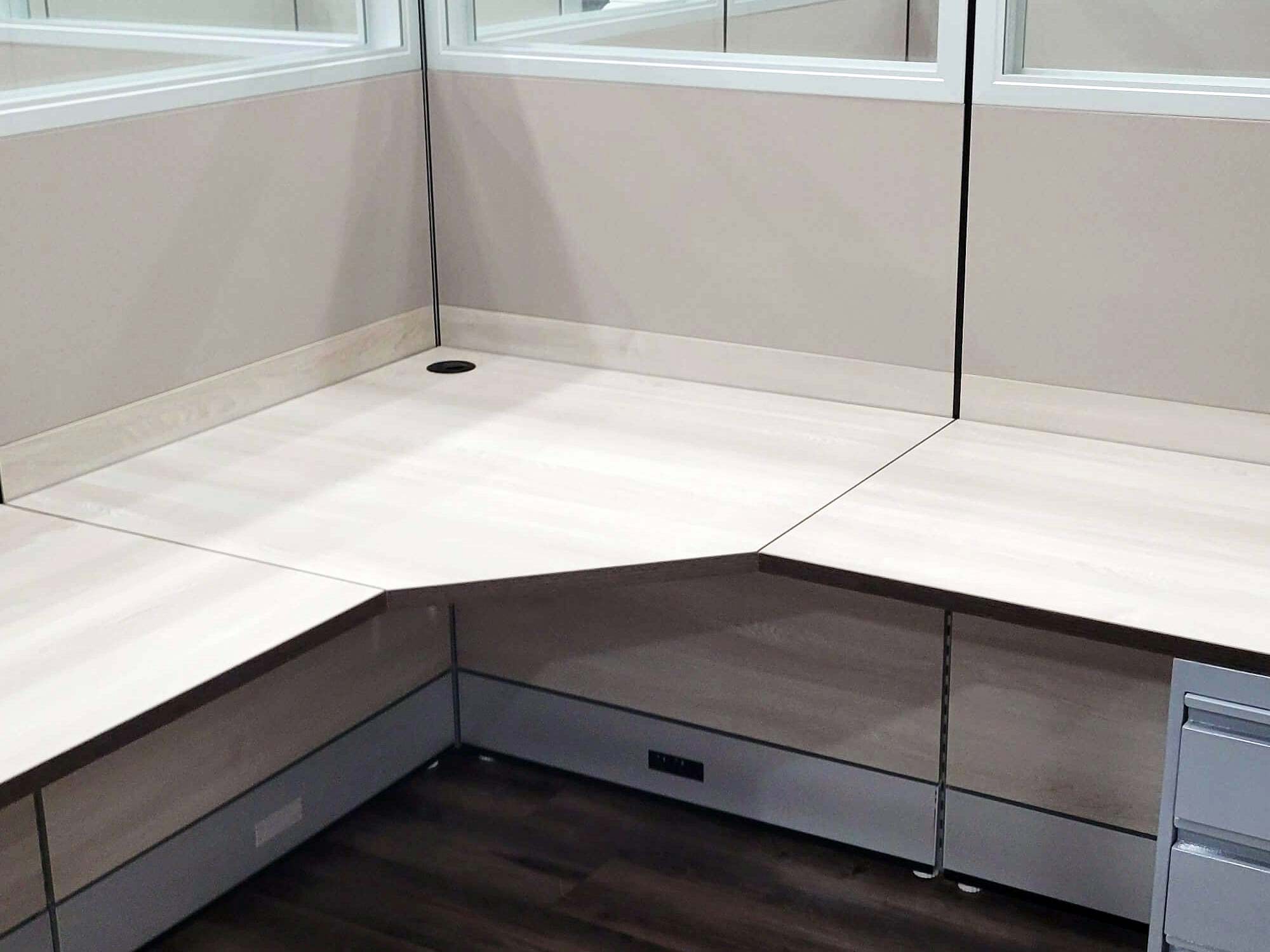 There are several options for the size, shape, and laminate you can choose for the worksurfaces in our cubicles. Be sure to check with our professional office design specialists for a comprehensive explanation of all your options.