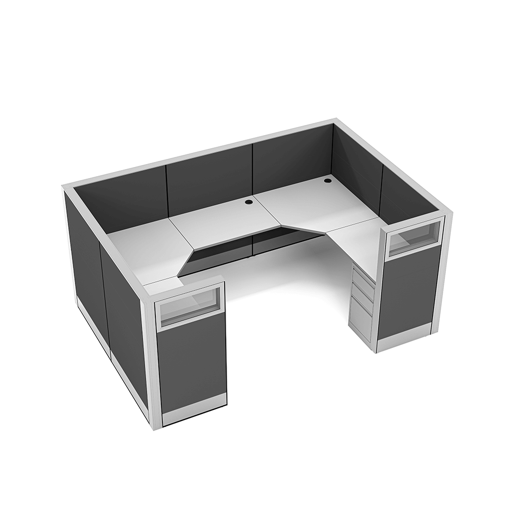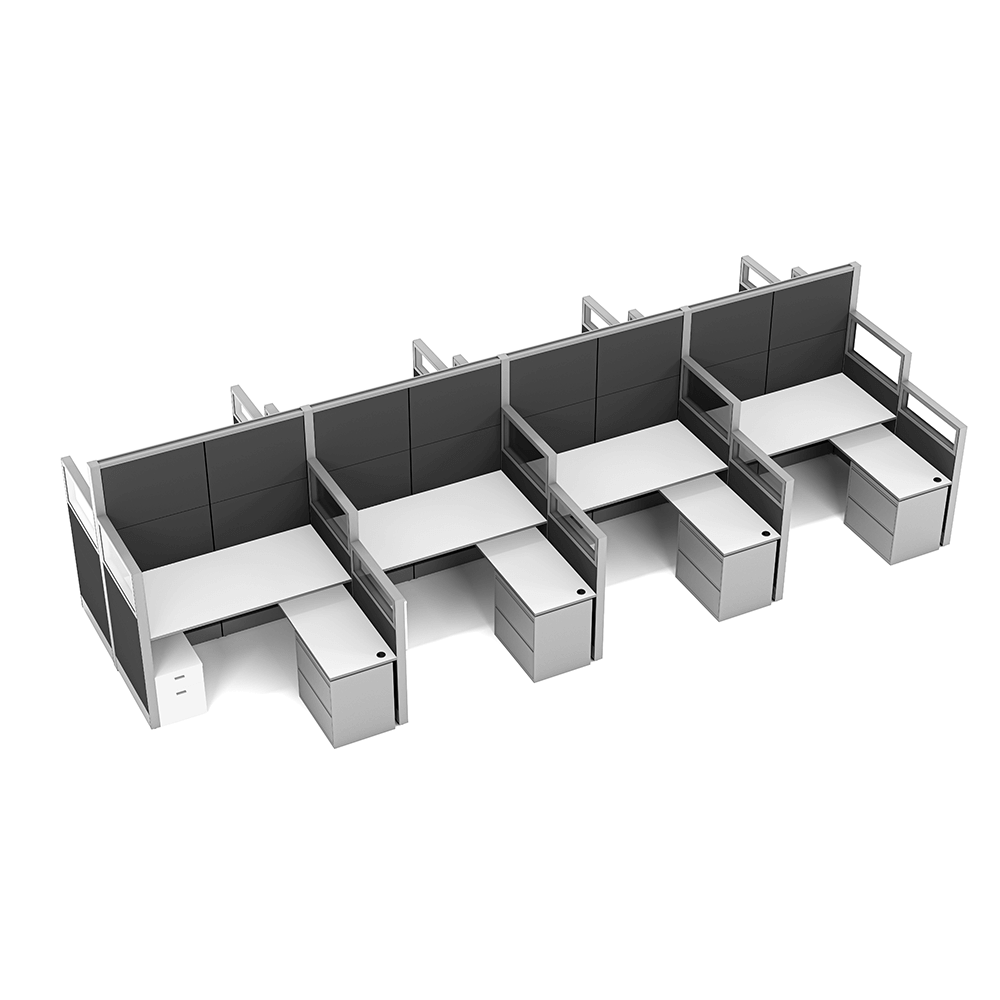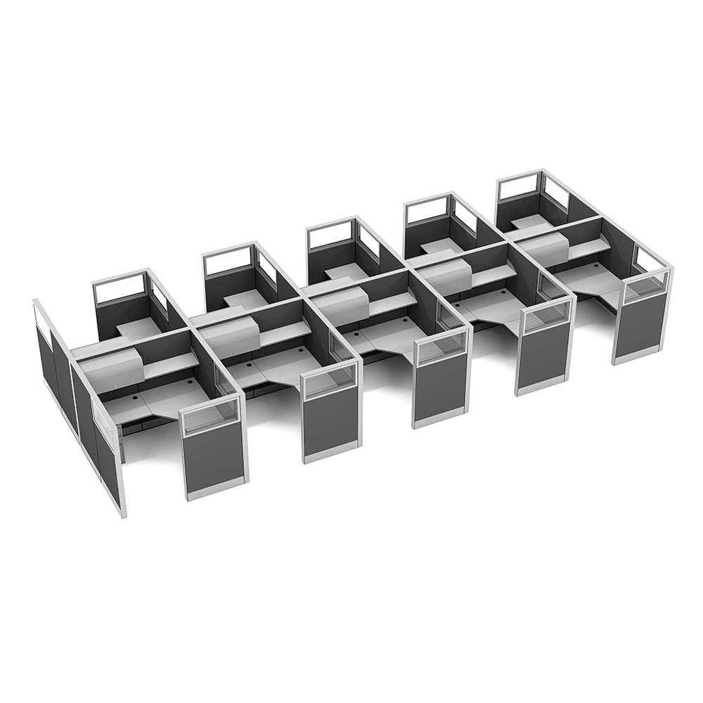 Call center cubicles are useful for seating groups of people focused on a specific task while still maintaining both sound and visual privacy. This can be for phone banking, test taking, study carrels, data centers, and other environments.