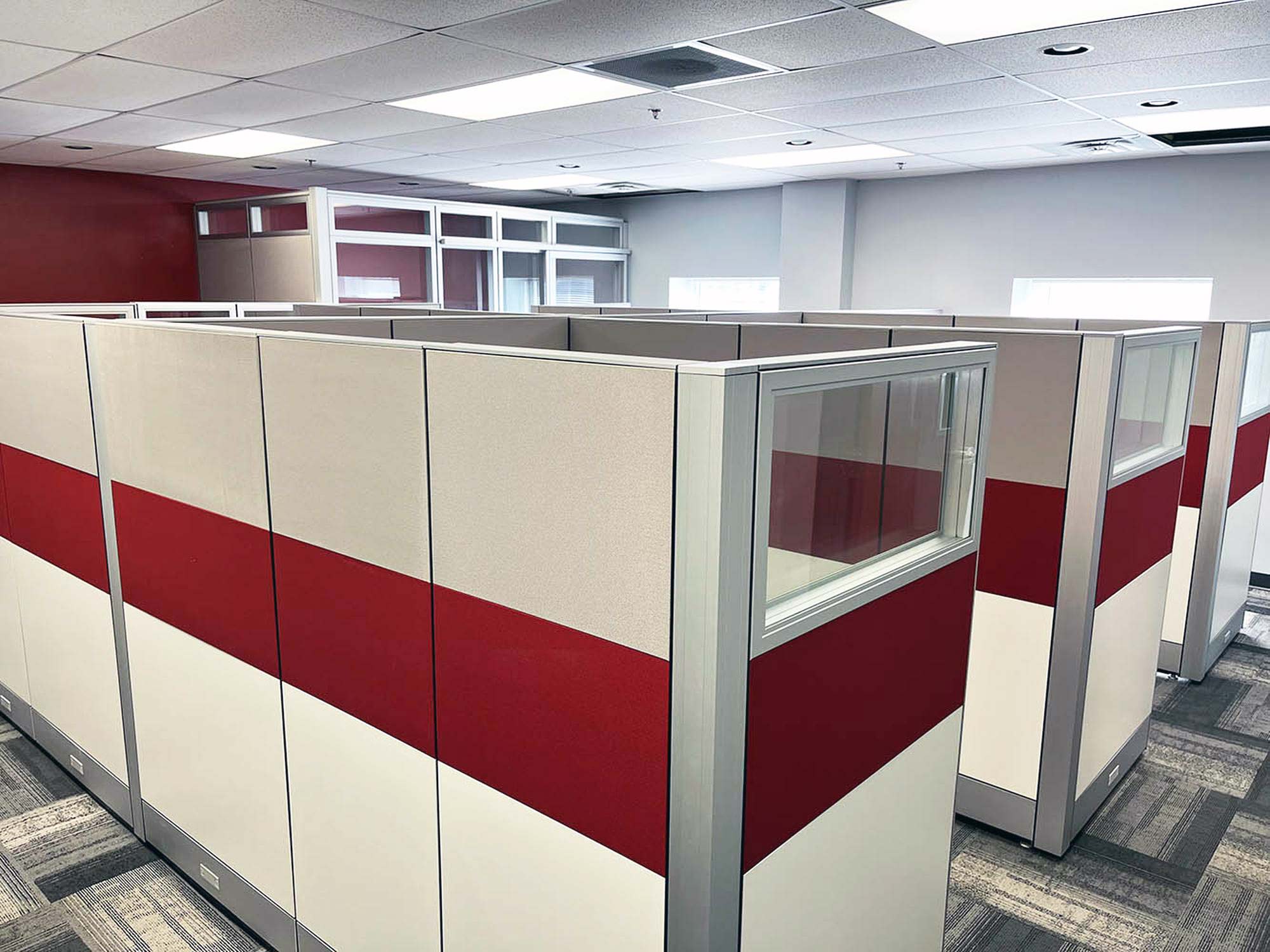 - Office Cubicle Workstations Ranging in Heights of 39″, 52″, 65″