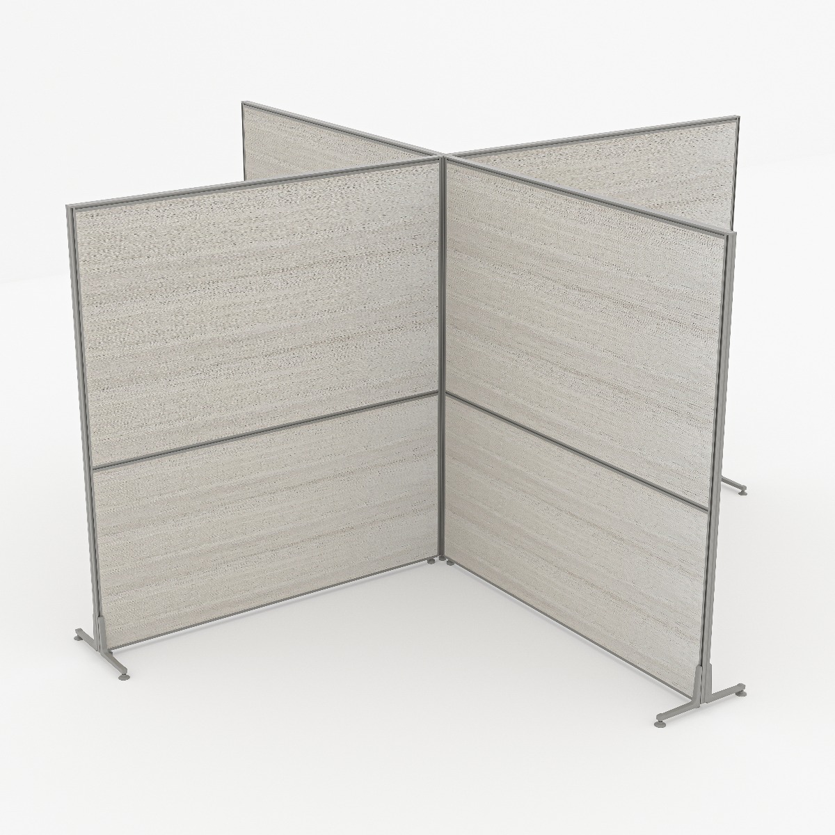 These panels can be configured in any number of ways. You can use them to create simple one-panel room dividers or complex multi-person workstations. These panels are freestanding and require no attachment to walls, floors, or ceilings. Additionally, wheels/casters can be added to the base to create mobile divider walls to be used in more than one area of your workplace.